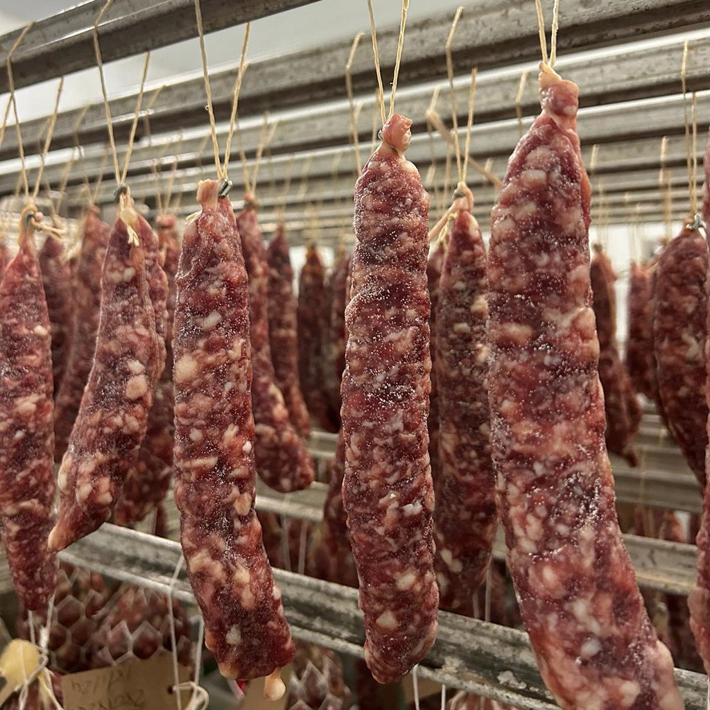 Another gem from Cornish Charcuterie, this salami is made to an Italian recipe. The meat is enhanced with hand-foraged Sea Spaghetti and cider. The sausages are then left to mature for 10 days to 8 weeks, depending on size, then sliced into these great sized packets.